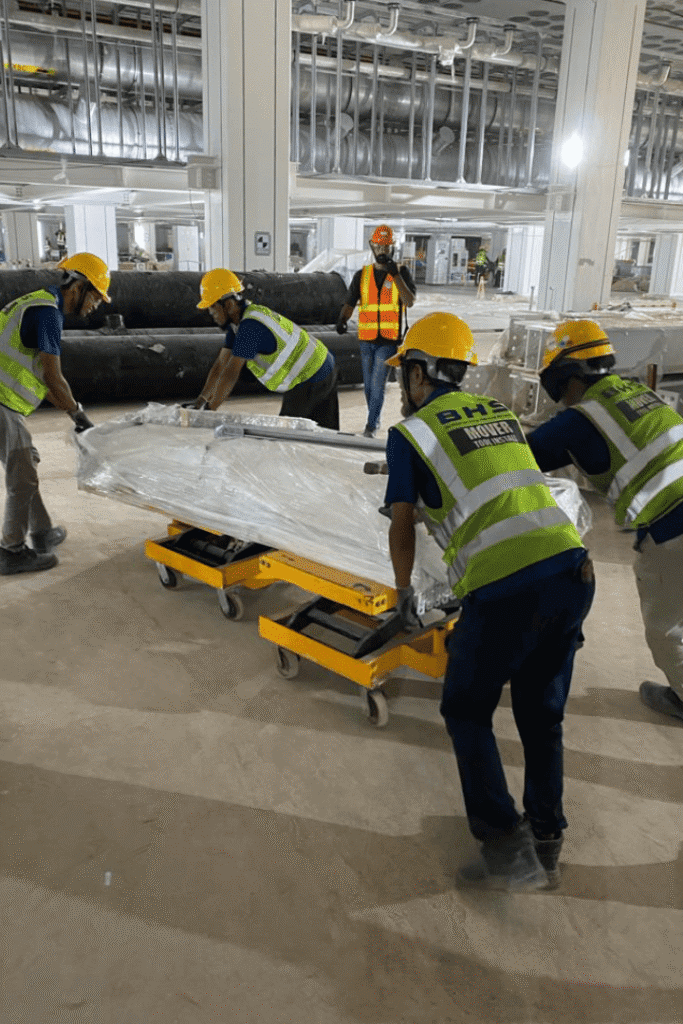 We plan and execute equipment relocation in cleanroom and technical environments, using engineered lifting tools and alignment methods to position every asset correctly.