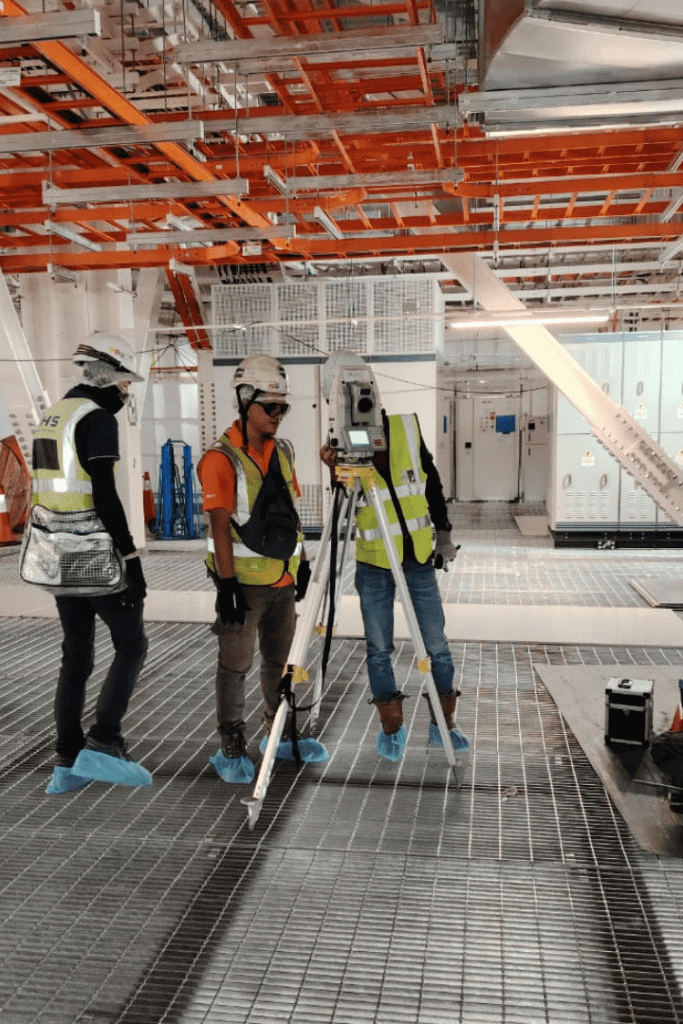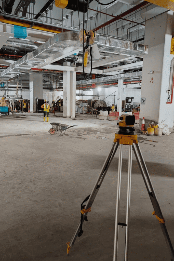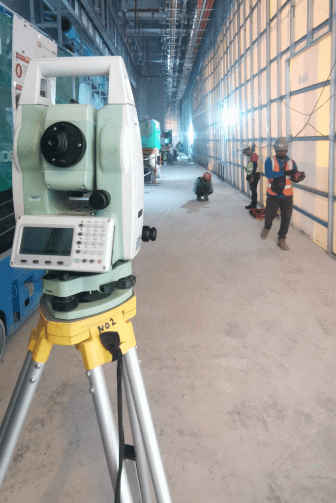We mark grid lines, base lines, tool footprints, and service alignment points required for installation. This includes equipment positioning services, layout marking, base-line marking, and grid-line marking.